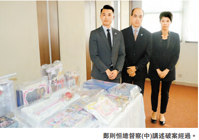 郑则恒续称,被捕两人锺爱动漫产品,会订货後在家中自拍,再在网上声称每件货物可平售数十元,而每宗交易由数百元至千多元不等;警方发现检获的货物全是正版,并无盗版货,并每款货物只得一件。此外,受害人分别为69女2男(14岁至45岁),并无特定背景,相信只是喜欢同一个动漫人物,单一案件最高损失约1000元,共涉款4.5万元。