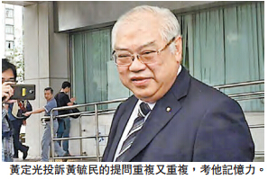 黄毓民庭上曾说:「你话我吹毛求疵,我慢慢问」,遭黄定光质疑他出言恐吓,官提醒不可故意拖延,影响作供。黄定光被问到案发前在座位上做什麽,他回答「写apps」,被黄毓民取笑,他才改正用字「写紧短讯……点都好啦,你明就得啦!」。案件明续审。