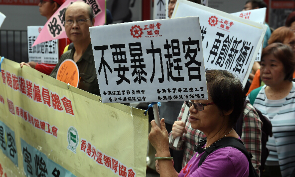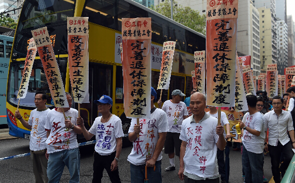 工联会昨发起主题为“为权益、争工道”的游行示威,就工时、外劳输入、强积金等议题提出工会诉求。 中通社