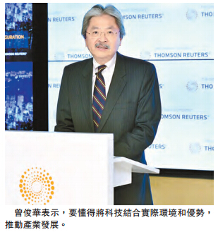对於以科技带动经济,曾俊华表示,一直认为当中的关键是「应用」,即使拥有最先进的科技作为工具,仍然要懂得将它结合实际环境和自身的优势,才能达到推动产业发展的目标。香港是世界上其中一个最国际化的商业和金融中心,与世界各地连系密切,资讯发达,资金自由流通,所以香港企业一直以来都成功利用这些市场优势,加上出色的供应链管理,有效地管理采购、生产、货运和营销各个环节,将世界各地的产品带到不同市场。