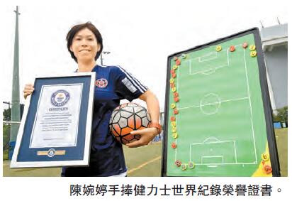 【香港商报网讯】记者冯仁乐报道:东方足球队夺得今届香港超级联赛冠军宝座,球队女主教练陈婉婷获健力士世界纪录认证,成为首位执掌顶级联赛男子足球队夺冠的女教练。陈婉婷昨晨在东方总监梁守志、全队球员,及约30名东方球迷见证下,於京士柏球场接受健力士世界纪录大中华区总监王晨颁发证书。