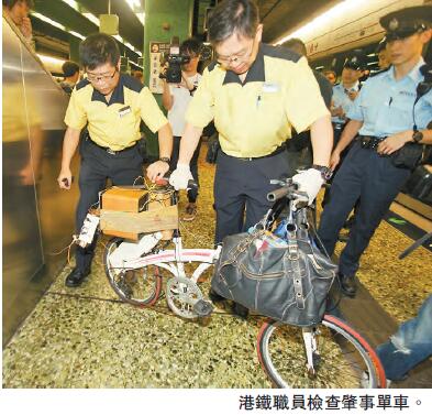 昨午将近3时,事主及其「座驾」乘搭荃湾线一列开往中环的列车,即将驶入深水桋站时,单车上一个木盒突然传出爆炸声,并且有白烟涌出,当时同卡列车上有不少乘客,各人惊闻巨响兼车厢内霎时间烟雾弥漫,均吓得「个心离一离」,纷纷向车头及车尾方向逃跑,同时也有乘客按紧急掣通知车长,未几列车驶入深水桋站月台停下打开车门,大批乘客连忙冲出车厢,港铁车长及职员则协助全车乘客疏散。
