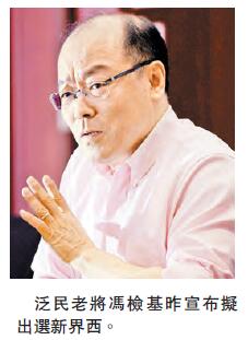 【香港商报网讯】记者李淇报道:立法会换届选举将於9月举行,不少资深议员都考虑退下火线,让生力军接棒,但泛民阵营老将、民协冯检基昨日却高调宣布,计划空降新界西角逐直选议席。冯检基声称,参选不会影响另一泛民政党街工在该区选情,反指是与建制派「硬撼」。