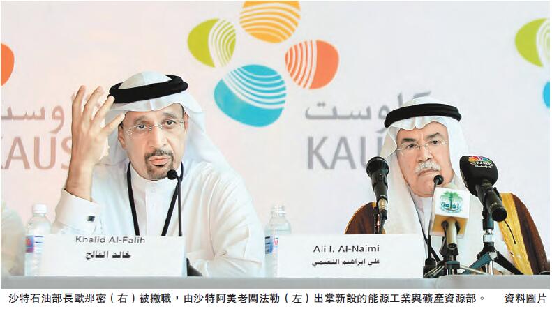【香港商报网综合报道】沙特国王萨勒曼当地时间7日进行了内阁大改组,其中最引人注目的是,撤换了在职长达20年的石油部长欧那密。沙特石油部门也将更名为能源工业与矿产资源部。沙特此举仅在雄心勃勃的「2030年愿景」计划宣布后的几天,而该计划旨在减少该国对石油的依赖。分析称,在担任沙特石油部长期间,欧那密一直努力管控石油价格,在他离任后,沙特可能允许市场力量在石油成本方面发挥更大作用。