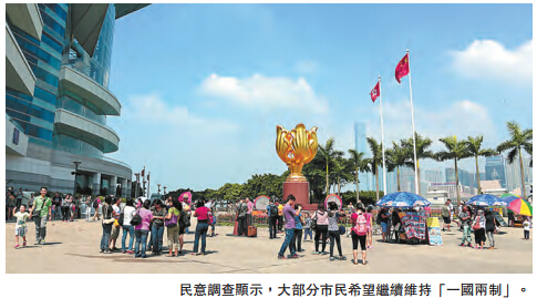 【香港商报网讯】记者周伟立报道:香港研究协会(港研)早前作全港性随机抽样电话访问,以了解市民对香港前途的意见,结果於昨日公布。结果显示,於2047年後本港继续维持「一国两制」,是大部分受访市民的盼望。港研负责人呼吁社会各界各自拿出最大善意作良性互动,多做有利於落实「一国两制」的行为。