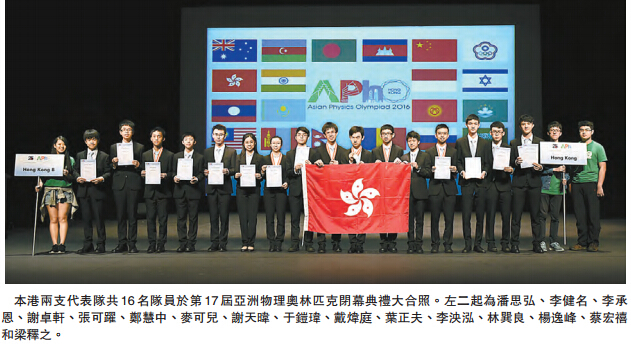 「第17届亚洲物理奥林匹克」赛事於本月1日至9日期间首度在本港举行,并由香港科技大学担任主办,一共吸引了26个国家或地区参加,打破历届的纪录。按照亚洲物理奥林匹克比赛惯例,香港作为主办城市额外选派队员以邀请队应赛,藉此为本地的物理资优学生提供更多机会,透过参与国际赛事拓宽视野。