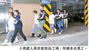 【香港商报网讯】记者区天海报道:为针对非法入境者及「免违反声请人士」在本港非法工作,入境处人员昨日进行打击非法劳工行动,先後在屯门1间食品工场及深水?2间食品店合共拘捕11人,包括10名男女黑市劳工及1名涉嫌聘用黑工的雇主。入境处发言人透露,今年首4个月已拘捕420名非法劳工,当中不少为持「行街纸」黑工。处方重申,聘请黑工属严重罪行,一经定罪可即时判入狱及罚款。