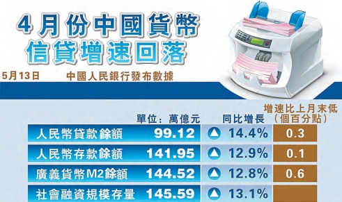 另有統計數據顯示,4月份四大國有銀行合計新增貸款環比減少了一半以上,新增貸款減速主要是因為住房按揭貸款增速放緩,而后者正是今年來推動貸款增長的主要因素。