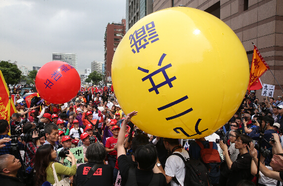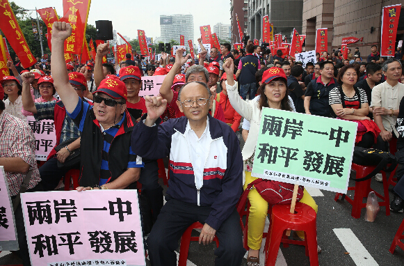 中华统一促进党等团体18日率众赴民进党中央,要求台湾地区新当选人蔡英文「坚守九二共识,维护两岸和平」。