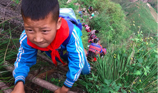 村莊通向外界,需要順著懸崖爬17條藤梯:有些幾乎垂直90度的藤梯里面嵌入鋼筋焊接的鋼梯,有些則是嵌入粗木樁。往下看就是懸崖,幾乎沒有任何遮擋。