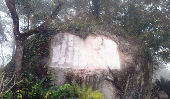 朱明國在五指山自然保護區旅游景區大石頭上的題詞被抹掉