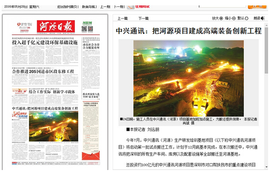 中興通訊:把河源項目建成高端裝備創新工程