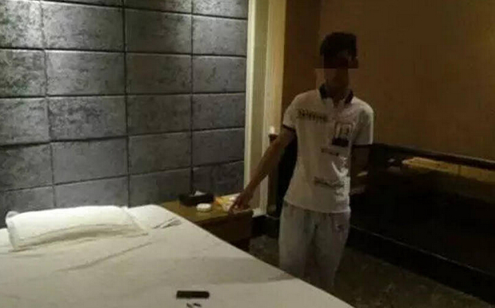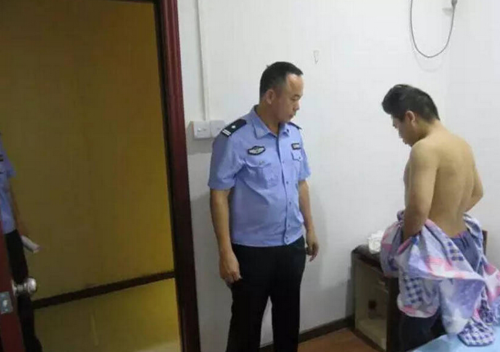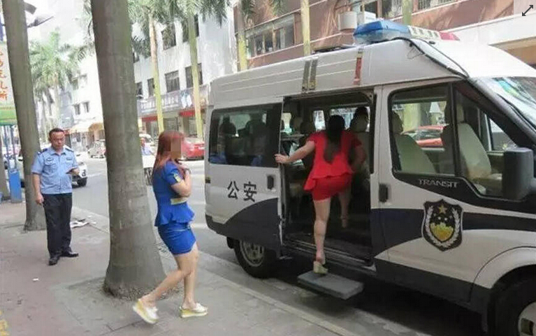 圖為被查現場,涉黃被抓女子均低頭,長發掩面。