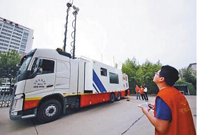 5月26日,河南省鄭州市,一場地震模擬演練正在進行。隨著“震情”開始,一輛重型卡車駛入,并隨即開始對外通信,承擔起“指揮中心”的功能。