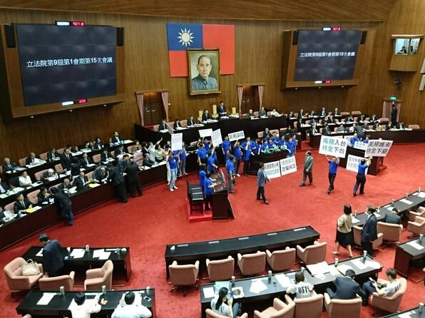 截至9時40分觀察者網發稿時,“立法院”講臺仍被國民黨“立委”們占據。“立法院長”已經宣布休會。