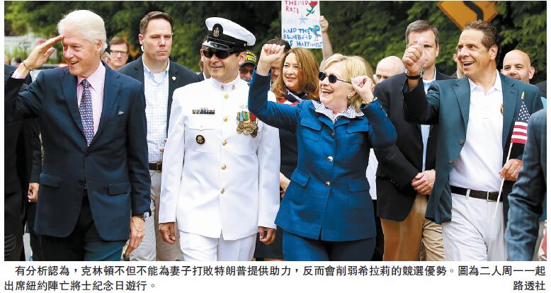 【香港商報网綜合報道】隨着美國總統大選選情的推進,各黨派總統參選人的助選力量也日益受到關注,其中美國前總統比爾克林頓更是被一些分析人士視作民主黨參選人希拉莉的一大助力。但BBC分析認為,克林頓不但不能為妻子打敗特朗普提供助力,反而會削弱希拉莉的競選優勢。
