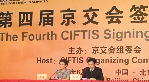 房愛卿透露,今年前四個月中國服貿的增速比去年全年提高2.3個百分點,占對外貿易的18.9%,比去年提高了3.5個百分點,其中,技術、智慧財產權使用、研發、服務進出口額達到214.8億美元。其中「一帶一路」沿線國家潜力持續釋放,增速明顯加快,占比逐年提升。其中,香港、歐盟、英國、日本、東盟、韓國、澳大利亞等占中國服貿比重超過70%。由於需求旺盛,京交會可能由以往的兩年一辦,恢復一年一辦,也即是明年會舉行第五屆。北京市副市長程紅表示,會根據國內外參展商意見積極研究制定明年開展國際貿易服務活動的方案,并及早公布,并增加線上線下互動,徵集意見,探索海外辦展,打造永不落幕的京交會。