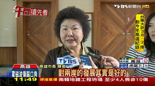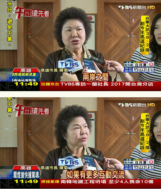 陳菊接受采訪,希望兩岸能多交流(圖片來自臺灣TVBS)