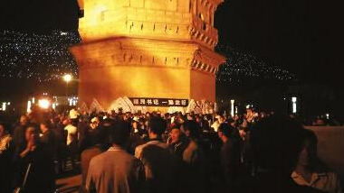 6月2日上午,彬縣縣城煙雨紛飛,開元廣場上難得看到人影。雨霧籠罩下,矗立了963年的彬塔莊嚴中平添了一份肅穆。三天前擺放的花圈和鮮花已經不在,只有古塔下面的斑斑燭跡,依稀還能讓人回想起當晚舉行千人悼念的悲慟場面。