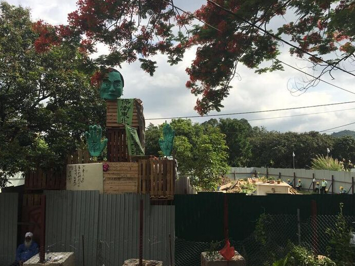 恒地昨日採取收地行動,圍封粉嶺馬屎埔農地,但數名示威者仍留守農地內的木板「城堡」上,今早有約40名恒地保安駐守,有聲援人士向「城堡」留守者送上物資,一度與保安對罵。