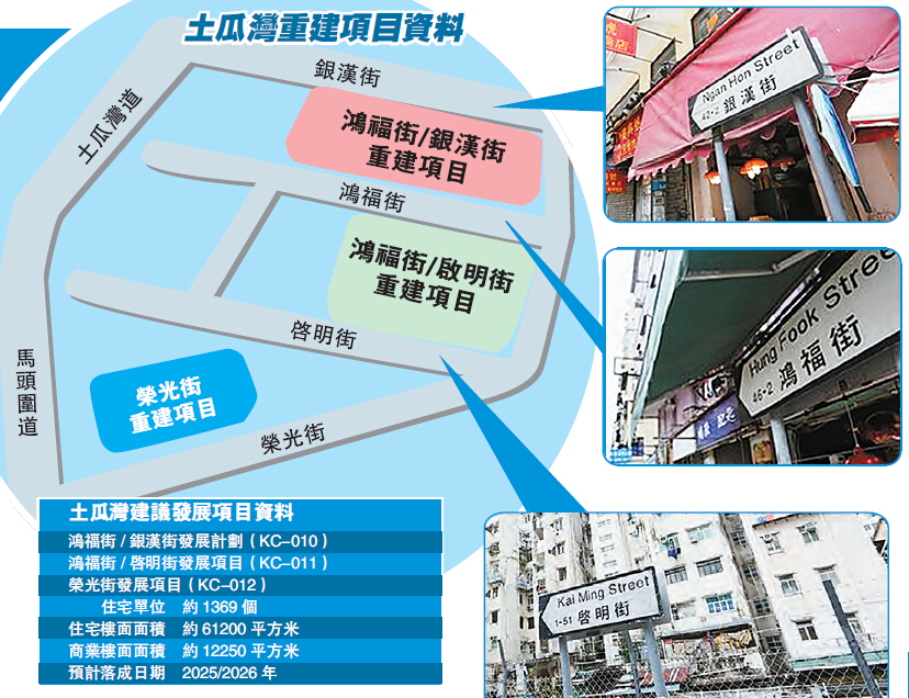 據了解,是次重建計劃將涵括土瓜灣榮光街、鴻福街/啟明街及鴻福街/銀漢街個項目合共97個街號,涉及地盤總面積約8840平方米,連同今年3月初開展的毗連庇利街與榮光街重建項目,合計地盤面積將達到16886平方米,規模較灣仔利東街重建項目高出超過1倍,僅次於觀塘市中心重建項目的「巨無霸」重建計劃。當中,單以鴻福街/銀漢街項目計,便屬該局至今於九龍城區內推出的第二大型重建項目,涉及總樓面面積約4.106萬平方米,預計規模相當於今年落成的馬頭角北帝街/木廠街發展項目近6倍面積。