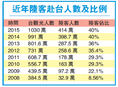 而臺灣旅行業品質保障協會昨日召開暑假價格記者會,品保協會副主委連郁卿表示,陸客占所有觀光客的5成,但過去常有的大陸交流團現在幾乎是掛蛋,從5月開始至今觀光團也少了2/3,雖然自由行旅客有稍微增加,但仍無法補足陸客缺口。觀光局雖然積極爭取東南亞、穆斯林觀光客;不過,其他區域整體來說增長不到10%,僅泰國明顯增長26%,整體占不到1成,「現在要看新政府態度」。