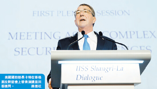 【香港商報網訊】美國國防部長卡特昨日在新加坡舉行的第15屆香格里拉對話會上發表演講,雖然一如外界預期仍炒作南海問題,更妄稱中國會造成所謂的「自我孤立」,但其口澸和措辭已較過往溫和,并提出願與中方加強合作,建立更深和更廣的亞洲安全網絡,又說打算在年內訪問北京。與會專家則認為,美國應摒弃涉華錯誤言行,管控分歧,繼續堅持中美合作的大方向。
