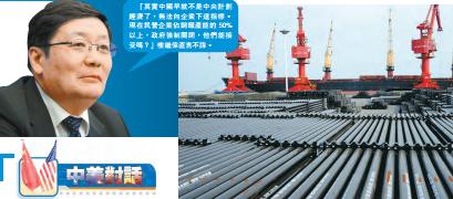 至於國際社會提出中國應該增加量化指標,如鋼鐵去掉4億噸產量。樓繼偉表示,中國現在不是中央計劃經濟,鋼鐵行業民營企業占產能的52%以上,難以通過量化指標強制企業去產能。中國政府通過加強環境、安全、能耗、質量等方面指標的監控和執行力度,通過市場出清的辦法來去產能,財政政策同時給予支持,來解決職工下崗等問題。