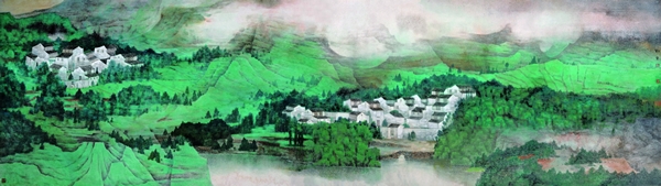 刘云保持的另一大特点是,在跨界与归位中拓展艺术语汇。他先是跨越了西与中、油画与国画、又跨越了设色与水墨、北派与南派。而每一次跨越,他都把艺术表现力的拓展落实在中国江南乡梦山水画的归位中。当代的学术发展,离不开交叉与边缘,以至于产生新的学科,而艺术的发展,除去由跨界产生新的美术品种外,还有在跨界与归位中的开拓。不过,当下的美术界,具有跨界勇气的多,懂得归位道理的少。没有跨越,就没有换位思考,就不能突破局限,没有归位,就弄不清相互的边界,就难以把收获落到主攻方向的实处。