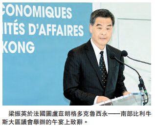 【香港商报网讯】记者周伟立报道:行政长官梁振英(CY)昨日正式展开访问法国行程,抵达欧洲重要的航天航空中心图卢兹。梁振英期望可借鉴图卢兹在航天航空产业的丰富经验,以有助於香港正全面推动的香港国际机场三跑道系统建设工程。