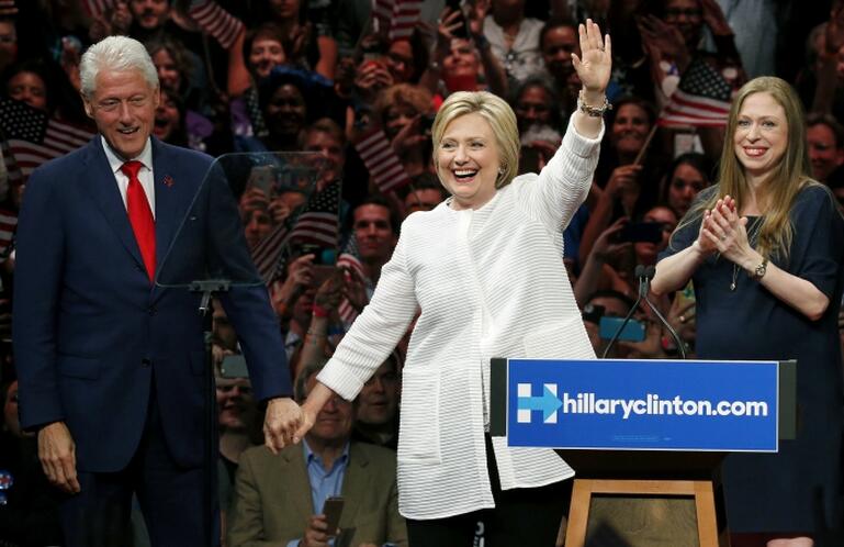 希拉莉与丈夫前总统克林顿及女儿(AP图片)