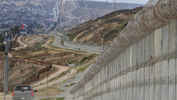 位于加州圣迭戈附近的美墨边境的隔离围栏。