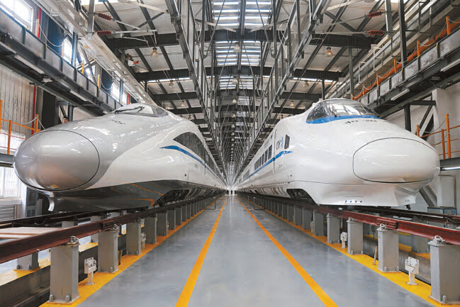 圖為高鐵動車放在昆明西動車檢查庫。