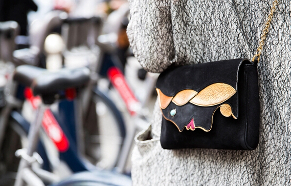 服裝簡約低調,其實亮點在包包上,人側臉的包蓋設計很有特色。