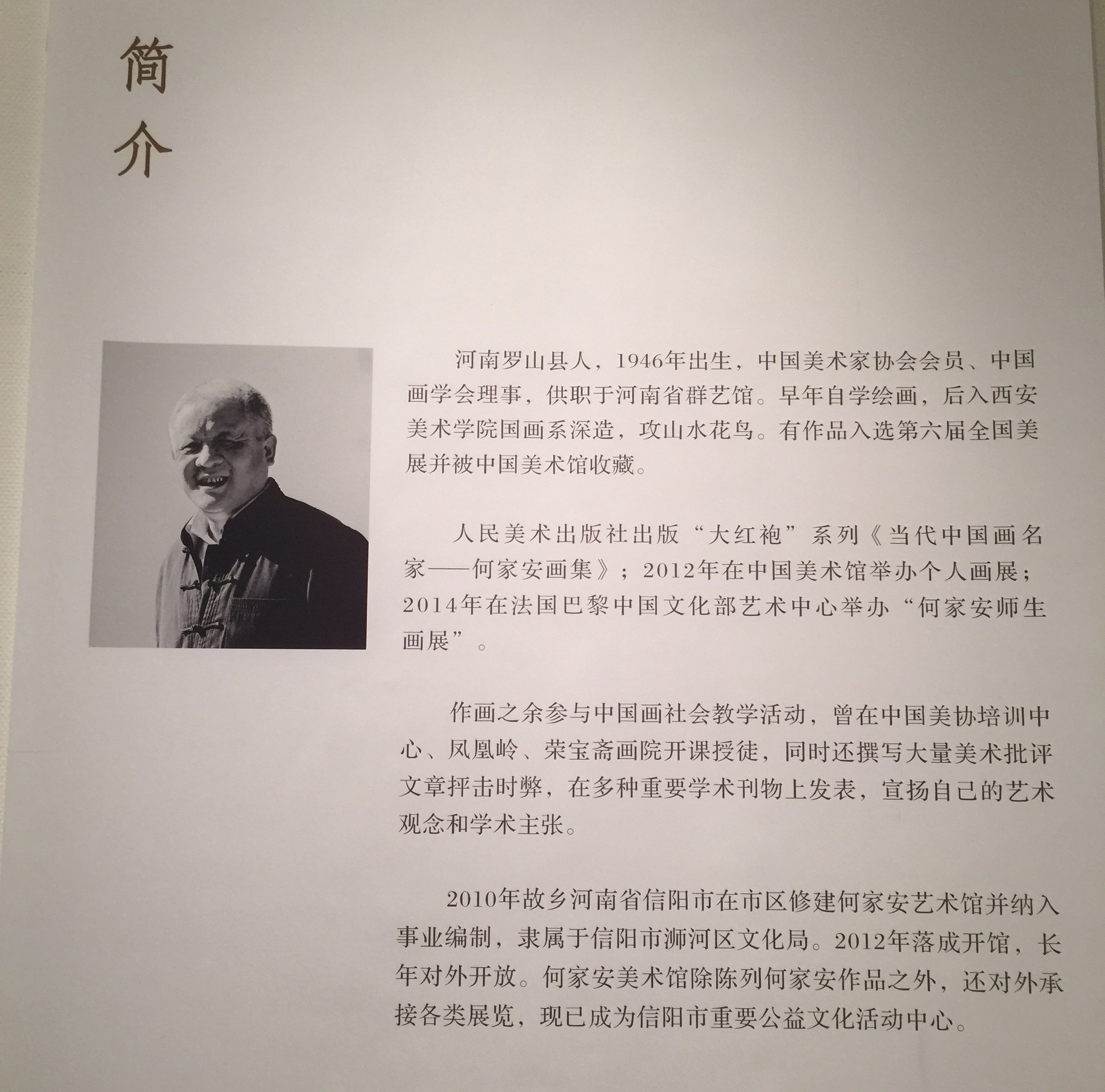 值得留意的是何家安強調自己創作並不完全依賴寫生,需要的生活積累是“進山只是看看、玩玩”,讓情感在自然发酵,從物我歸一到情景交融,讓自我表達得以自由伸張的機會,這種近直覺的觀照,就是作者從藝的情感本源所在:“唯天下至誠,為能盡其性”--對家山真摯的情感正是何家安作品的魅力所在。在何家安的繪畫語言里,我們清楚地看到細細消化了的傳統程式規范精華,被一個現代畫家的心與手重新演繹而成的結果,這結果便是何家安有別于當代諸家的獨家面目。何家安作為一位資深的老藝術家,有作品參加第六屆全國美展、全國首屆山水畫展、全國首屆畫院雙年展等重大美術活動。
