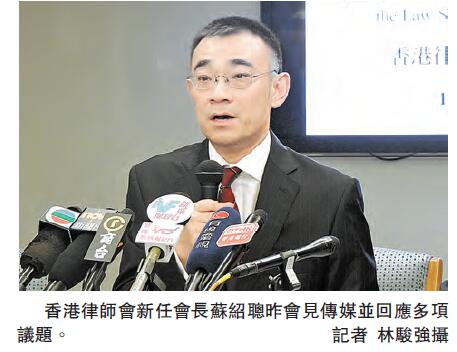 苏绍聪昨早联同两位副会长彭韵僖及黎雅明会见传媒,并回应多项议题。就终审法院首席法官马道立早前表示,香港法院目前面对前所未有的挑战。苏绍聪指出,过去一段时间有不少市民透过法院解决其不满,导致较多案件要由法院处理;他指部分人士因为不满法庭裁决,作出某些行为,亦是法庭面临的挑战。