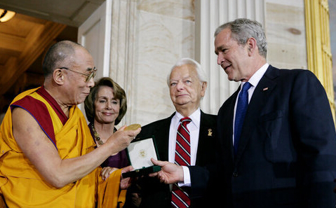 小布什总统高调到国会,出席达赖喇嘛获颁赠国会金章仪式,是首位在任美国总统与达赖一同在公开场合出现。