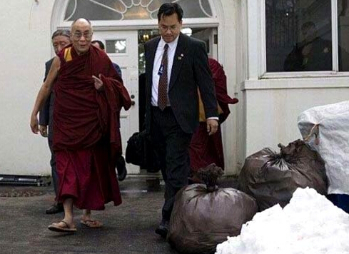 会见美国总统之后,达赖走垃圾通道离开白宫。
