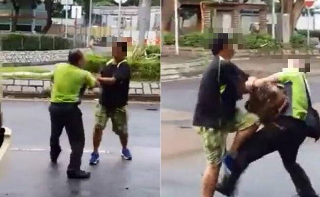 二人打斗期间,一度推撞间步出马路,有一辆巴士驶过,险象环生。有旁观者不停劝止,称会报警处理,亦有人以手机拍下过程,最後由两名男子将二人分开。