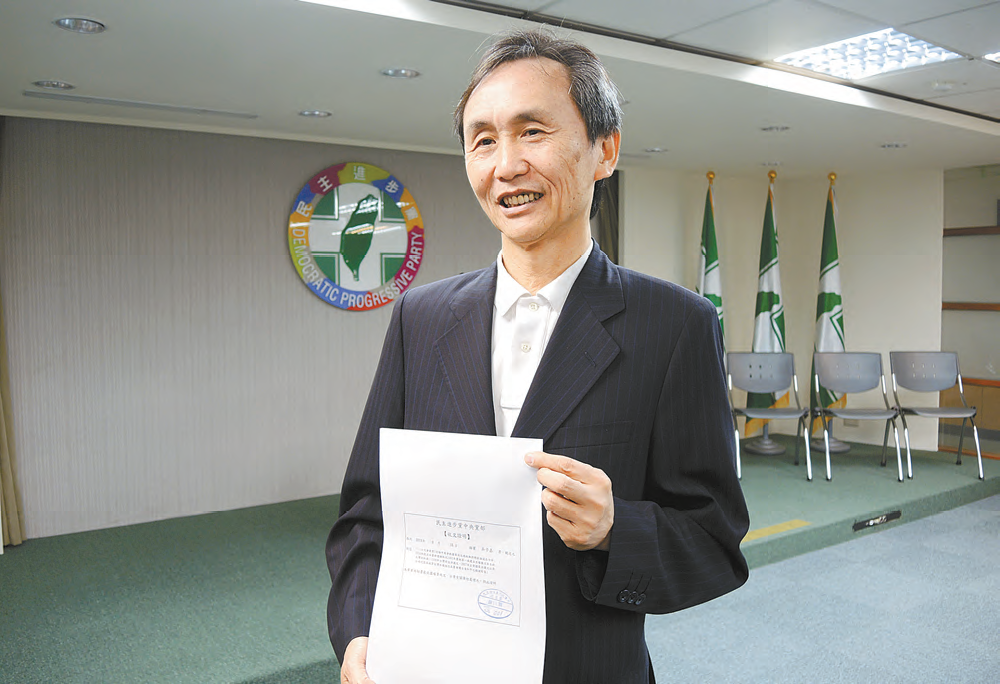 吳子嘉秀出黨中央開出的“收文證明”。中央社