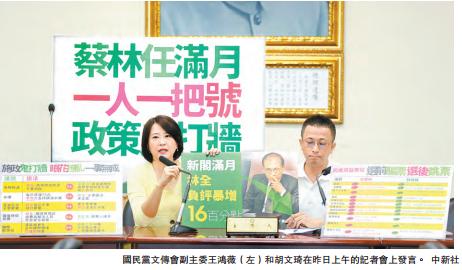 王鴻薇同日上午召開「蔡林任滿月、一人一把號、政策鬼打牆」記者會,她表示,除行政、立法部門經常相互打臉外,「閣員」更是失言滿天飛、一人一把號,施政雜亂無章,林全「內閣」民調不滿意度爆增。
