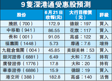 深港通會對券商股產生正面刺激,內地股市散戶是主流,深港通若開通將會增大市場交投量,當中投資者可以關注散戶客戶較多的券商股,如中國銀河證券(6881)。