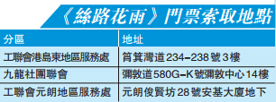 他说,今年的活动各有亮点、内容丰富;重点活动为庆回归系列活动启动礼暨《丝路花雨》经典舞剧演出。此剧以敦煌壁画和丝绸之路为题材,以和平、友谊为主题,自1979年首演至今演出达2600多场,并先後出访30多个国家和地区,观众达400多万人次。此剧亦?合国家所提出的「一带一路」,市民可由明天起索取免费门票,每场各有1000张入场券在港、九、新界其中3个地点派发,每人限取其中一场门票两张(详见附表)。