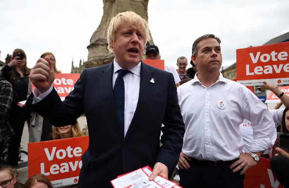 伦敦前市长鲍里斯·约翰逊(左)为“脱欧”做宣传。