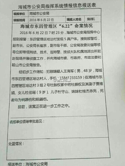 6月22日上午7时许,辽宁省鞍山市海城市东四管理区哈达村发生一起杀死多人的恶性案件。