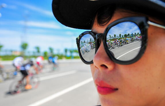 6月25日,一名观众在观看山地车青年组比赛。