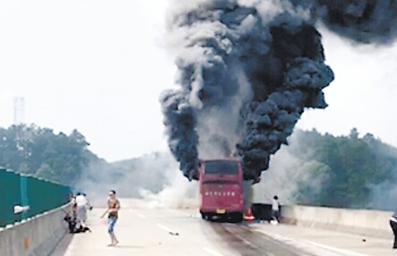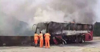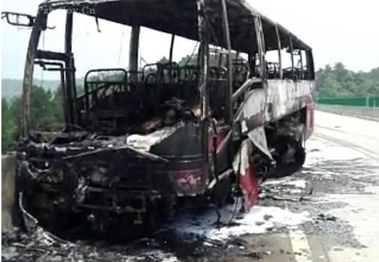 客车烧得只剩钢架