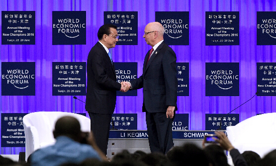 世界经济论坛2016年新领军者年会(第十届“夏季达沃斯论坛”)于6月26日至28日在天津举办。李克强表示,当前中国经济发展的基本面没有改变,宏观政策也将保持连续性和稳定性。我们通过推动结构调整来促进结构转型,保持经济运行在合理区间,中国经济不会“硬着陆”,今年能够实现全年经济社会发展的主要预期目标。他亦提到“四众”平台,指中国政府会大力倡导创新,不仅包括技术创新,也包括体制创新,给人才以更多的创新空间,并且宽容失败。