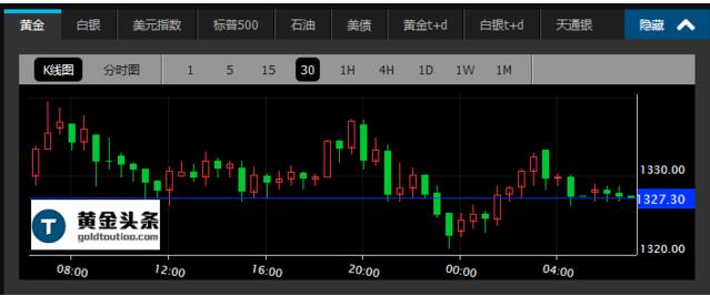 現貨黃金周一亞市早盤開于1315.48美元/盎司后強勢上漲,當日開盤價即是最低價,在錄得日內高點1334.90美元/盎司后轉跌,起伏不定。歐市延續盤整態勢,金價跌宕起伏。美市先跌后漲,最終收于1324.40美元/盎司,上漲0.71%。