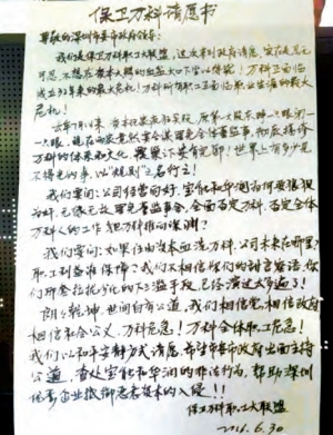 值得注意的是,昨日有消息稱萬科員工計劃前往深圳市政府請願,從網傳圖上可以看到,員工所拉橫幅上書「無故罷免搞垮萬科體系文化」。公開呼吁信點名華潤與寶能,用詞較為激烈。對此,萬科表示,公司并未發過網傳的全體通知,部分員工自發前往深圳市政府信訪辦遞交請願信,公司管理層第一時間知情后到現場勸回,公司會竭盡全力維持正常運營。